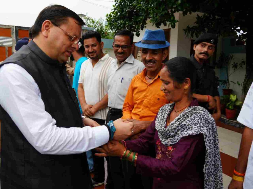 खटीमा : शनिवार को मुख्यमंत्री पुष्कर सिंह धामी अपने गृह क्षेत्र खटीमा पहुंचे जहां जनप्रतिनिधियों एवं जनता ने उनके आवास व कैंप कार्यालय में उनका स्वागत किया। इस दौरान मुख्यमंत्री ने जनता से मुलाकात कर उनकी समस्याएं भी सुनी। साथ ही उन्होंने संबंधित अधिकारियों को समस्याओं के निस्तारण हेतु आवश्यक दिशा निर्देश दिए। मौके पर उपस्थित कई महिलाओं ने सीएम को रक्षा सूत्र भी बांधा।