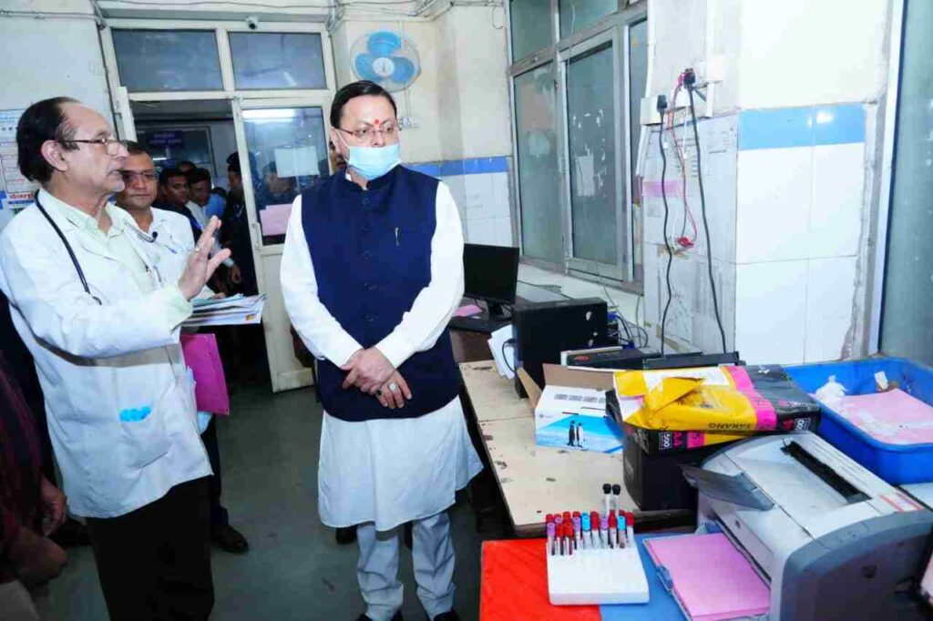 देहरादून: मुख्यमंत्री पुष्कर सिंह धामी ने शनिवार संध्या को राजकीय दून मेडिकल कॉलेज चिकित्सालय का औचक निरीक्षण कर अस्पताल में उपलब्ध स्वास्थ्य सेवाओं, उपचार की गुणवत्ता तथा व्यवस्थाओं का गहन जायजा लिया।