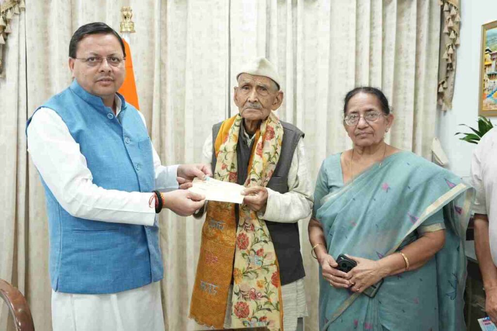 देहरादून: मुख्यमंत्री पुष्कर सिंह धामी से शनिवार को मुख्यमंत्री आवास में 96 वर्ष के पंडितवाड़ी, देहरादून निवासी जबर सिंह रावत ने मुलाकात कर उत्तराखंड में आपदा के पुनर्निर्माण कार्य हेतु मुख्यमंत्री राहत कोष में ₹ 7 लाख की सहयोग राशि भेंट की।