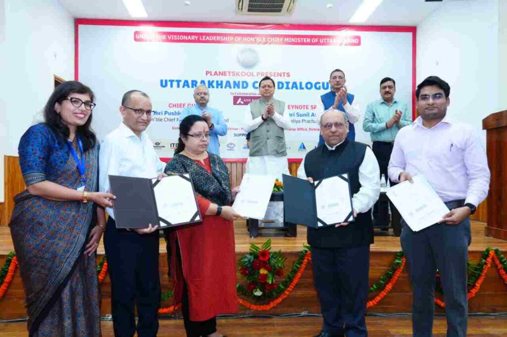 देहरादून: मुख्यमंत्री पुष्कर सिंह धामी ने बुधवार को मुख्यमंत्री आवास में उत्तराखण्ड सी.एस.आर. डायलॉग कार्यक्रम में प्रतिभाग किया। इस अवसर पर उन्होंने मुख्यमंत्री आदर्श ग्राम सारकोट के प्राथमिक विद्यालय में डिजिटल क्लासरूम का वर्चुअल शुभारंभ भी किया। कार्यक्रम में एक्सिस बैंक समूह के साथ राज्य के 24 विद्यालयों के डिजिटलाइजेशन के लिए तथा टोयटा के साथ पर्यावरण संरक्षण, शिक्षा, स्वास्थ्य एवं सामुदायिक सशक्तिकरण के क्षेत्र में सी.एस.आर. संचालित करने के लिए एमओयू किया गया।
