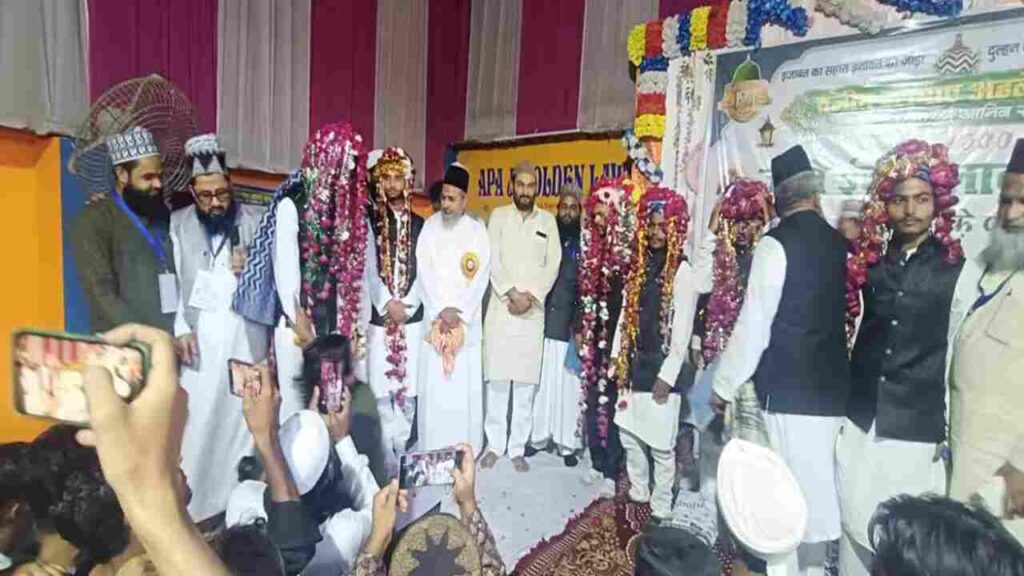 खटीमा: ईद मिलादुन्नबी के मौके पर खटीमा में पहली बार मुस्लिम समाज में सामूहिक निकाह कार्यक्रम आयोजित किया गया. तंजीम उलेमा ए अहले सुन्नत सामाजिक इस्लामिक संस्था ने गरीब बेसहारा सात बेटियों का निकाह करवाया. सभी बेटियों को निकाह के दौरान 55 हजार के आवश्यक घरेलू सामान उपहार के रूप में दिये गये. इस मौके पर हजारों लोग मौजूद रहे.