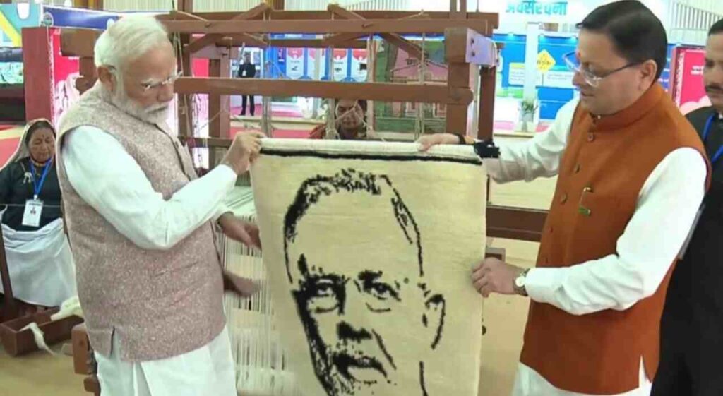 देहरादून: राज्य स्थापाना दिवस के मौके पर पीएम मोदी उत्तराखंड के दौरे पर हैं. इस दौरान सीएम धामी ने पीएम मोदी का स्वागत किया. सीएम धामी ने पीएम मोदी को उत्तराखंड की समृद्ध हस्तकला परंपरा के प्रतीक, बुनकरों द्वारा बुनी तस्वीर भेंट की. सीएम धामी ने बताया यह चित्र नए भारत के शिल्पकारों की उस सृजनशीलता और समर्पण का प्रतीक है, जो आत्मनिर्भर भारत के स्वप्न को साकार कर रहे हैं.