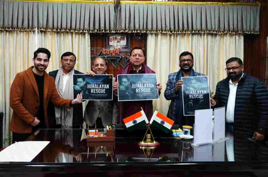 देहरादून: मुख्यमंत्री पुष्कर सिंह धामी ने शुक्रवार को निर्देशक ऋषभ कोहली और प्रशांत उपाध्याय के निर्देशन में परिवर्तन पिक्चर के बैनर तले बनी डॉक्यूमेंट्री ‘द ग्रेट हिमालयन रेस्क्यू’ उत्तराखंड के टीजर और पोस्टर का विमोचन किया।