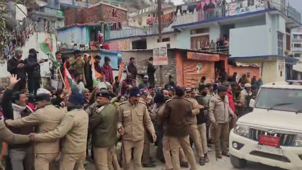 कृषि मंत्री गणेश जोशी गंगोरी में आयोजित जन-जन के द्वार जन जन की सरकार कार्यक्रम और माघ मेले में शिरकत करने पहुंचे थे. जैसे ही कृषि मंत्री गणेश जोशी का काफिला गंगोरी पहुंचा, तभी कांग्रेस कार्यकर्ताओं ने उन्हें काले झंडे दिखाकर वापस जाने की मांग की. इस दौरान पुलिस बल को उन्हें रोकने के लिए कड़ी मशक्कत करनी पड़ी.