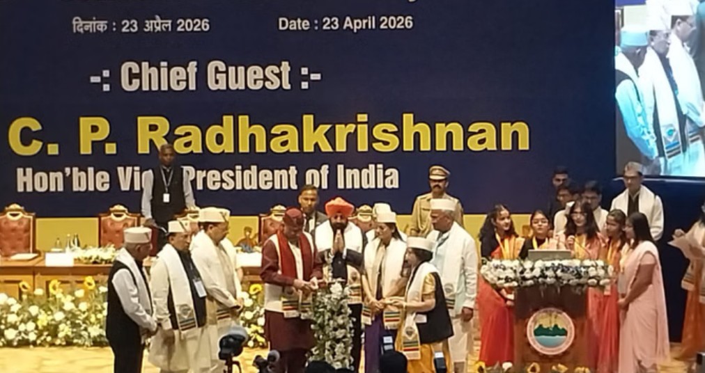 ऋषिकेश: सी पी राधाकृष्णन ने गुरुवार को अखिल भारतीय आयुर्विज्ञान संस्थान ऋषिकेश के छठे दीक्षांत समारोह में मुख्य अतिथि के रूप में शिरकत की। इस दौरान गुरमीत सिंह और पुष्कर सिंह धामी भी मौजूद रहे।